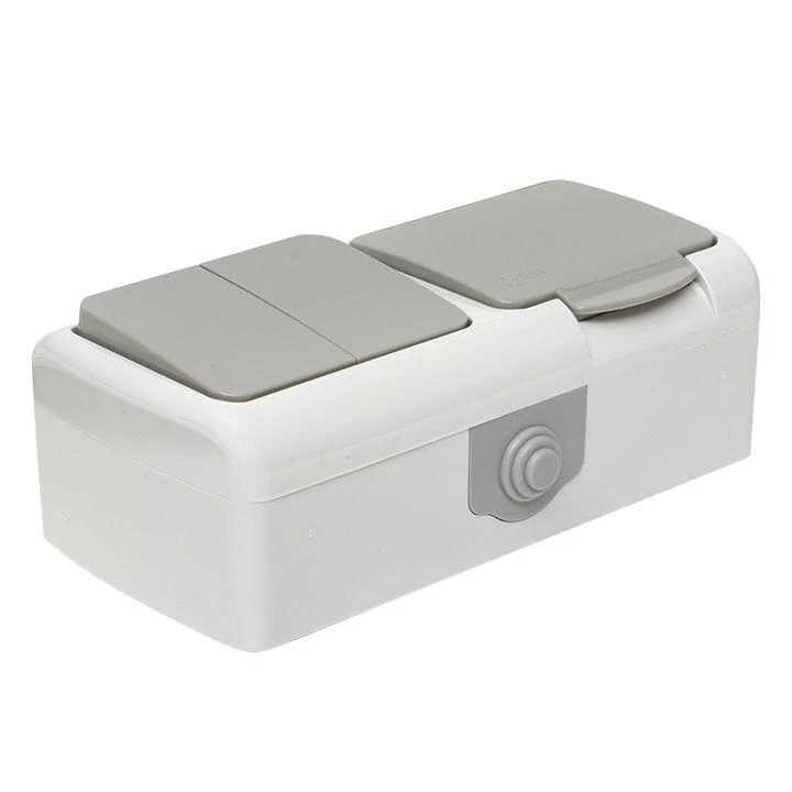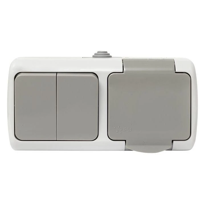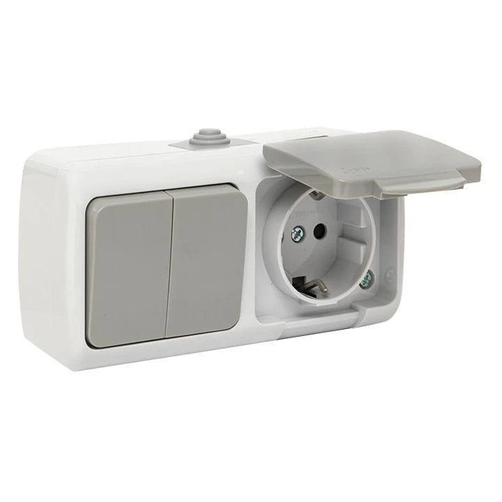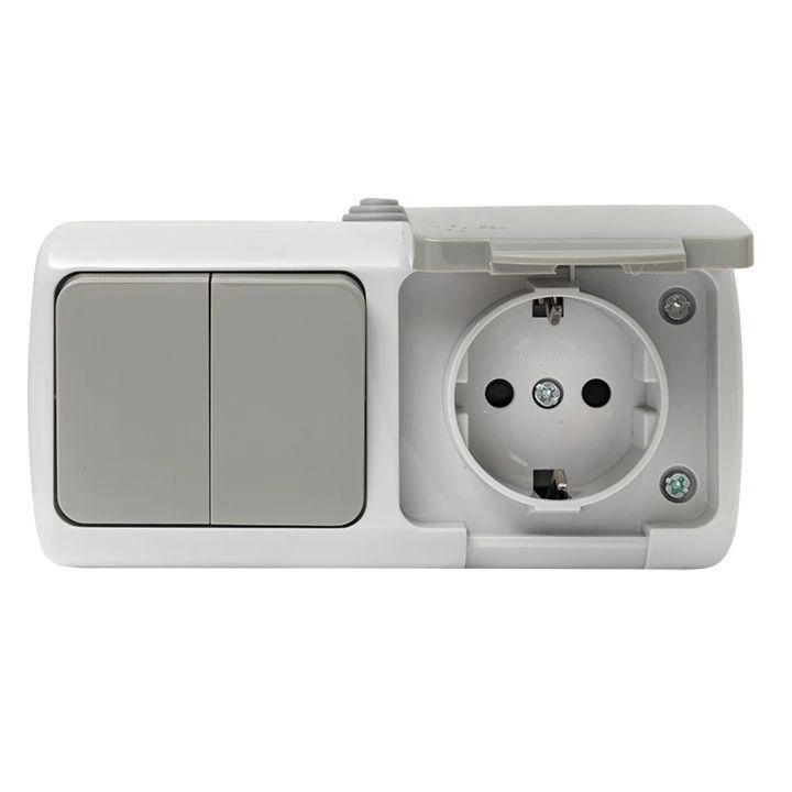 Блок ОП розетка 1-м 16А с заземл. с крышкой+выключатель 2-кл. Мурманск IP54 сер. EKF EFRV16-052-30-540