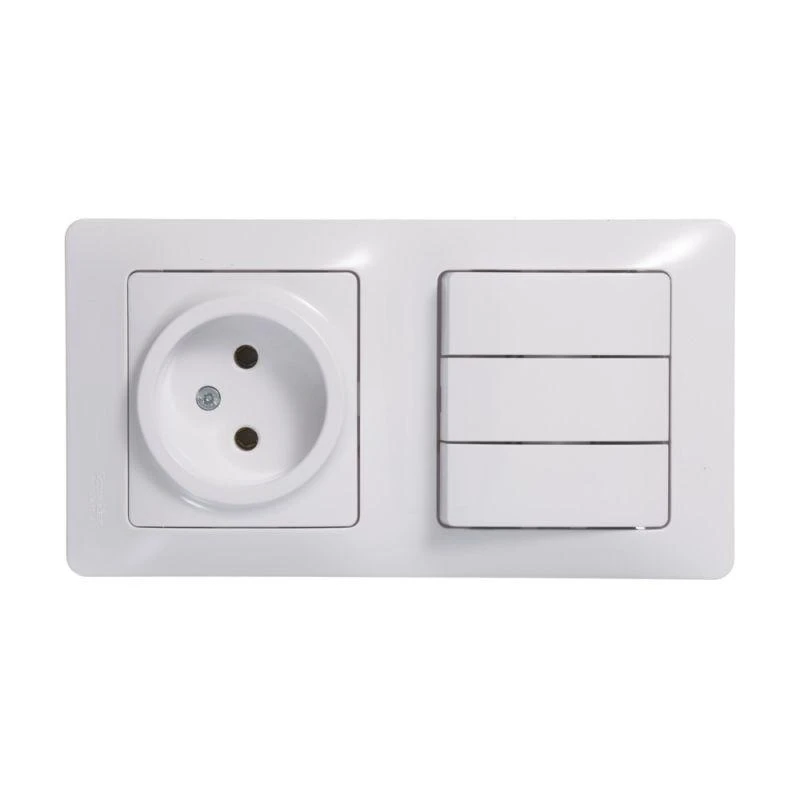 Блок комбинированный Schneider Electric Glossa (в сборе, цвет белый) предназначен для сетей до 250 В, состоит из розетки на 16 А и 3-клавишного выключателя на 10 А.