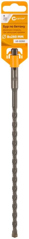 Бур по бетону Profi Plus двойн. спираль три пылеотводящие кромки 8х260мм Cutop 49-8260