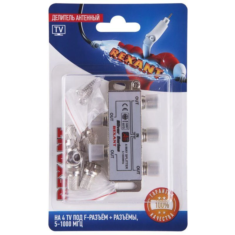 Делитель антенный F-типа на 4 TV + F-разъемы 5-1000МГц блист. Rexant 06-0047-C