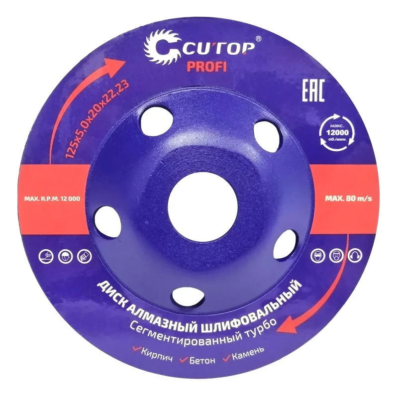 Диск алмазный шлифовальный сегментированный турбо 125х5.0х20х22.2мм Cutop 69-12550