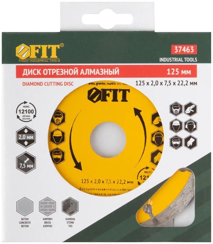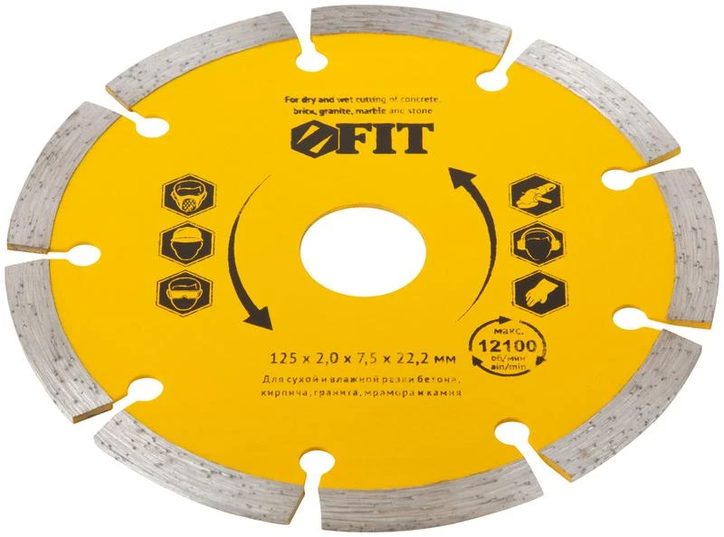 Диск отрезной алмазный сегментный (сухая и влажная резка) 125х2.0х7.5х22.2мм FIT 37463