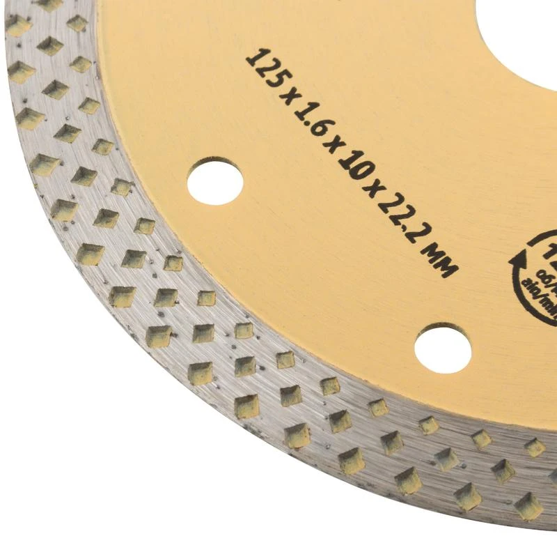 «Универсал-плюс». Универсальный. Для сухой и влажной резки бетона, кирпича, гранита, керамогранита, мрамора и камня. Изготовлен по технологии горячего спекания. Высота алмазной режущей кромки 10 мм. Посадочный диаметр 22,2 мм. Предназначен для углошлифовальных машин. Материал: высокоуглеродистая инструментальная сталь, режущая кромка содержит порошок из технических алмазов. Упаковка: картонный конверт.