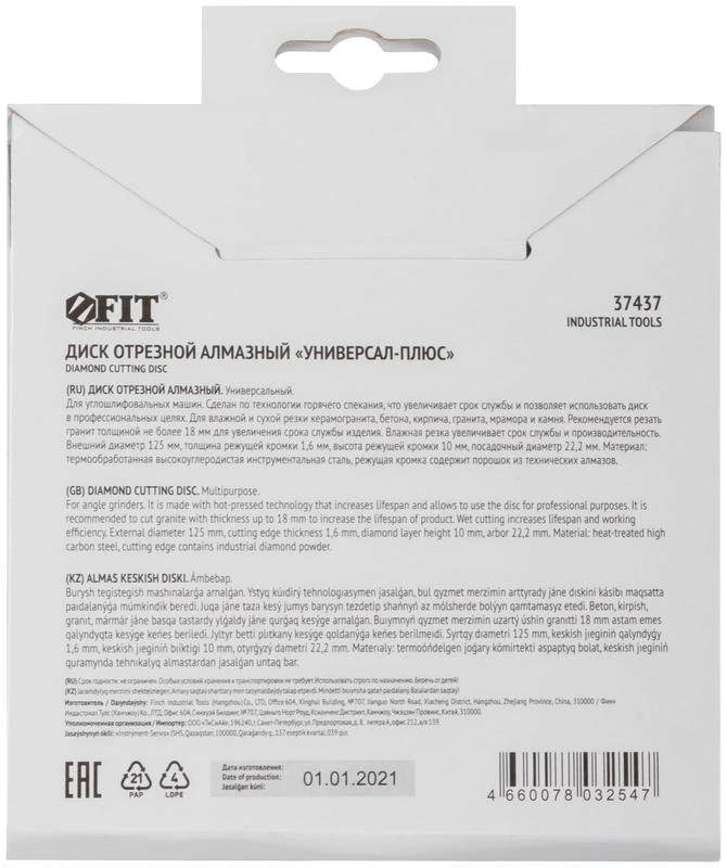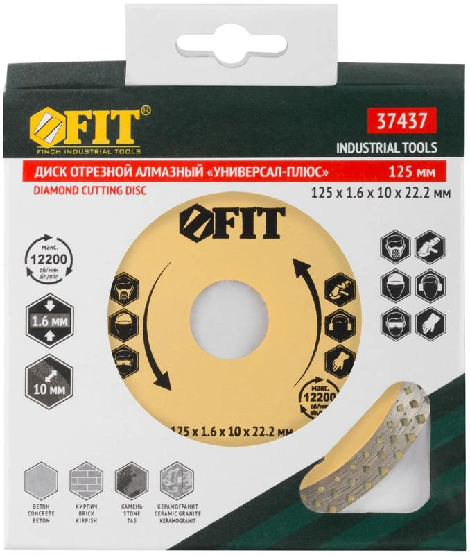 Диск отрезной алмазный "Универсал-Плюс" (сухая и влажная резка) 125х1.6х10х22.2мм FIT 37437
