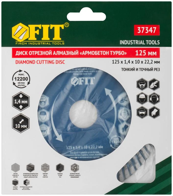 Диск отрезной алмазный универсальный "Армобетон турбо" (сухая и влажная резка) 125х1.4х10х22.2мм FIT 37347