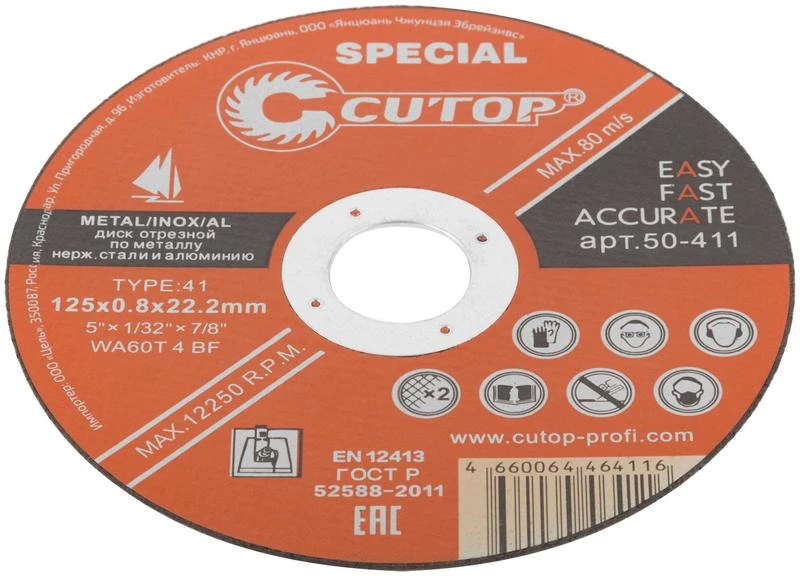 Диск отрезной по металлу нерж. стали и алюм. Special Т41-125х0.8х22.2мм Cutop 50-411