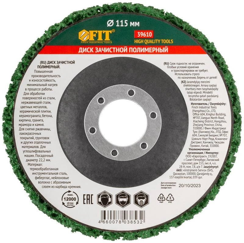 Диск зачистной полимерный посадочный d22.2мм 115мм зел. FIT 39610