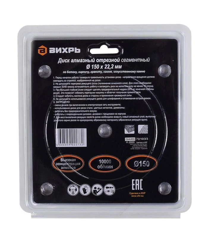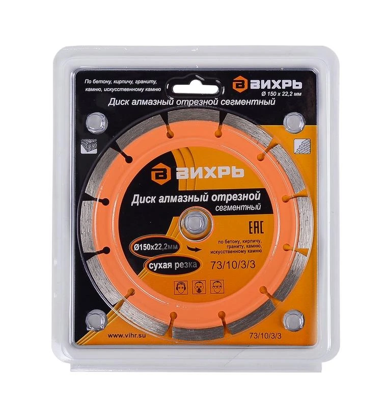 Диск алмазный отрезной сегментный 150х22.2мм сухая резка Вихрь 73/10/3/3