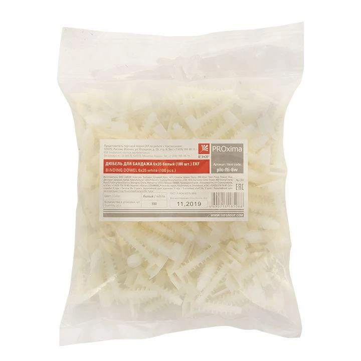 Дюбель для бандажа 6х35 бел. (уп.100шт) PROxima EKF plc-fti-6w