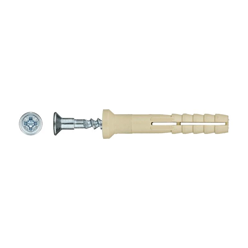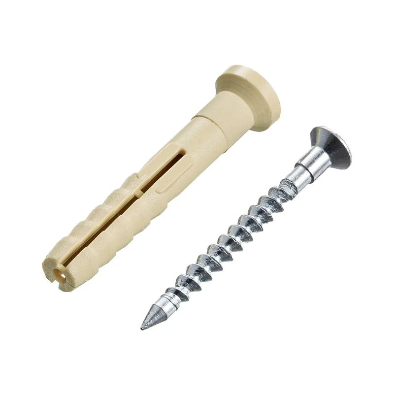 Дюбель-гвоздь SMX-L состоит из следующих элементов: дюбель с потайным бортиком и двухсегментной распорной зоной, распорный элемент – специальный гвоздь с потайной головкой с крестообразным шлицем PZ и усиленным подголовником. Дюбель изготовлен из нейлона, гвоздь – из углеродистой стали, покрытие – желтый цинк. Дюбель-гвоздь предназначен для крепления строительных материалов и изделий к основаниям из бетона, полнотелого кирпича, строительного камня. Применяется для сквозного монтажа кронштейнов, дверных коробок, оконных рам, кабельных каналов, обрешетки, гипсокартонных листов (ГКЛ), гипсоволокнистых листов (ГКЛ) и т.д. Для установки необходимо предварительно просверлить отверстие. Прочность крепежа достигается расклиниванием дюбеля в отверстии гвоздем в момент удара молотком. С помощью крестообразного шлица на головке гвоздя можно легко ослабить или усилить крепеж, демонтировать его. Дюбель-гвоздь с потайным бортиком устанавливается «заподлицо», т.е. его шляпка утапливается, благодаря чему возможно производить крепежные работы без последующего выравнивания поверхности.