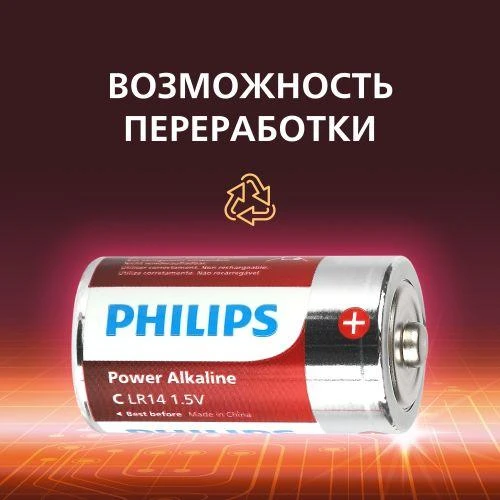Элемент питания алкалиновый C/LR14 1.5В Power (блист. 2шт) Philips Б0062687