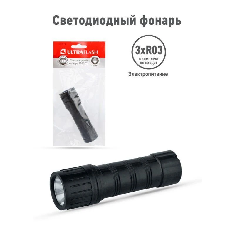 Фонарь 7102-ТН 1LED 1 режим 3хR03 черн. (блист.-пакет) Ultraflash 11788