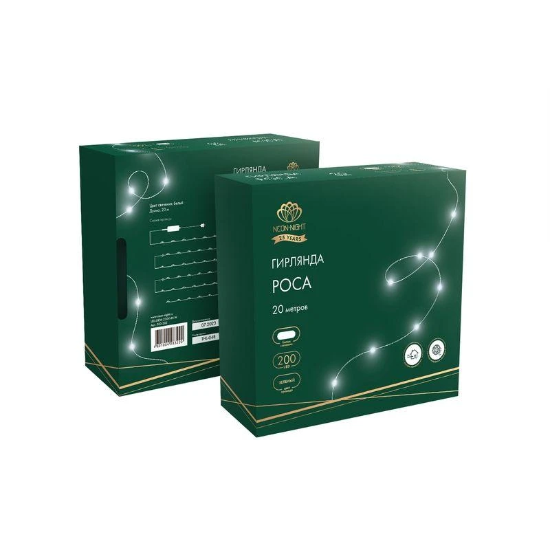 Гирлянда "Роса" 20м 200LED бел. IP20 230В с контроллером провод зел. Neon-Night 303-265