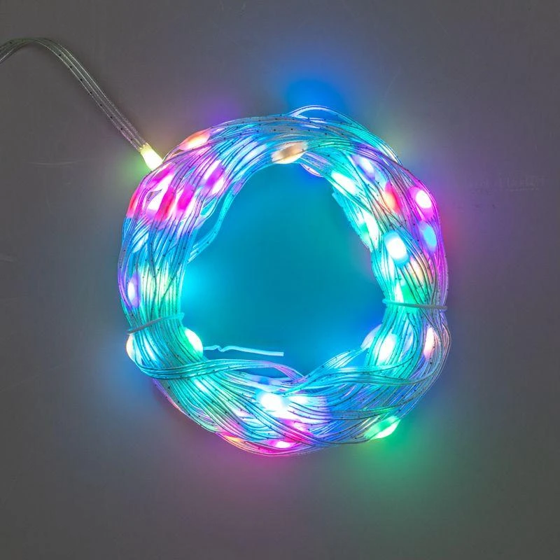 Гирлянда светодиодная смарт "Роса" "Нить" с крупными светодиодами 10м 100LED RGB IP20 USB провод прозр. Neon-Night 245-019