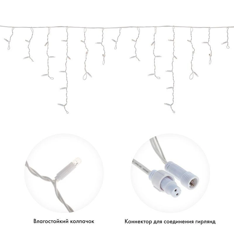 Гирлянда светодиодная "Айсикл" (бахрома) 1.8х0.5м 48LED тепл. бел. 3Вт 230В IP65 провод бел. Neon-Night 255-026