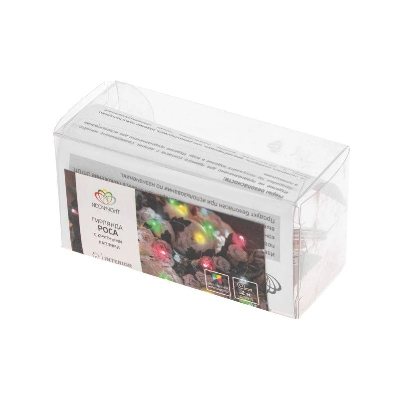 Гирлянда светодиодная "Роса" с крупными каплями 2м 20LED мультиколор 0.1Вт IP20 тонкий батарейный блок элементы питания 2хCR2032 (в компл.) Neon-Night 302-009