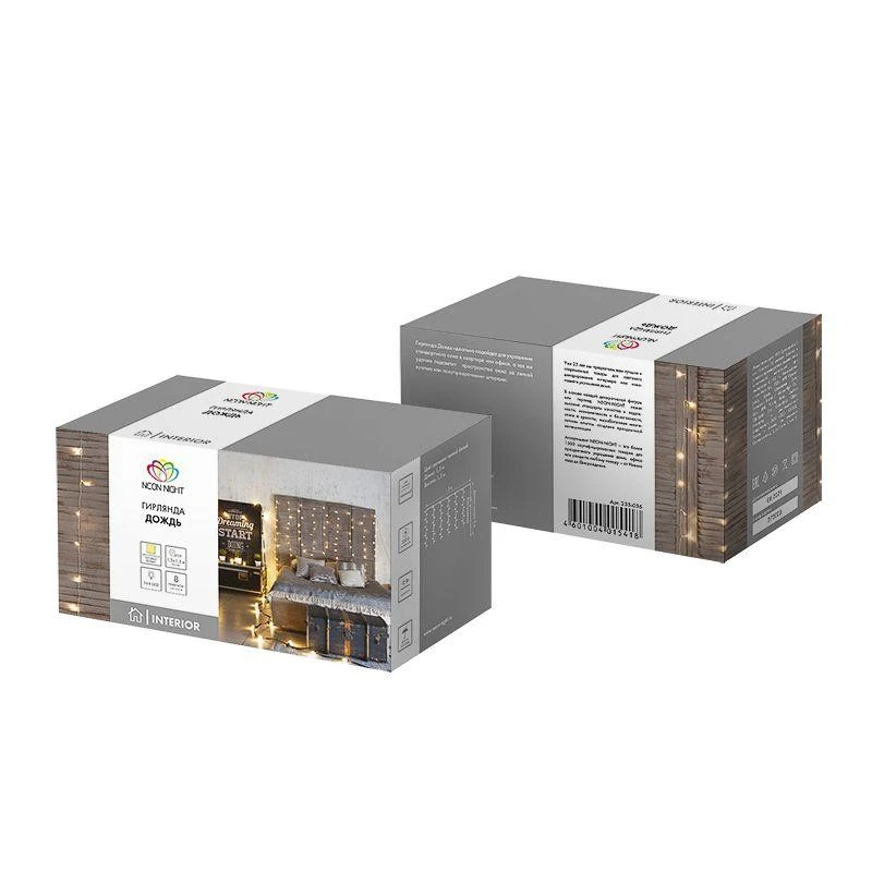 Гирлянда светодиодная "Светодиодный Дождь" 1.5х1.5м 144LED тепл. бел. 12Вт 220-240В IP20 свечение с динамикой с контроллером провод прозр. Neon-Night 235-036