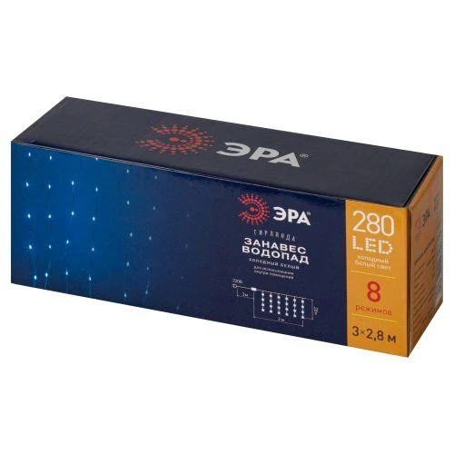 Светодиодная новогодняя гирлянда ЭРА ENIN-300WD занавес водопад холодный белый 3*2,8 м 280 LED IP20