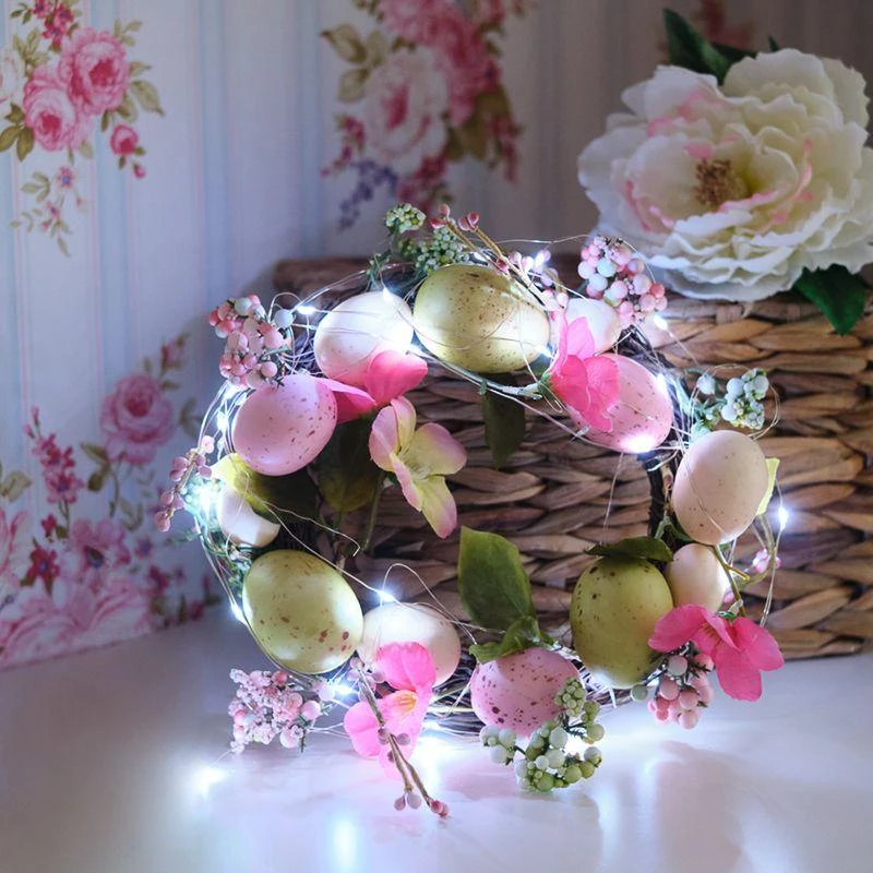 Гирлянда может эффектно подчеркнуть красоту картины, вазы с цветами, статуэтки или украсить небольшую елочку.