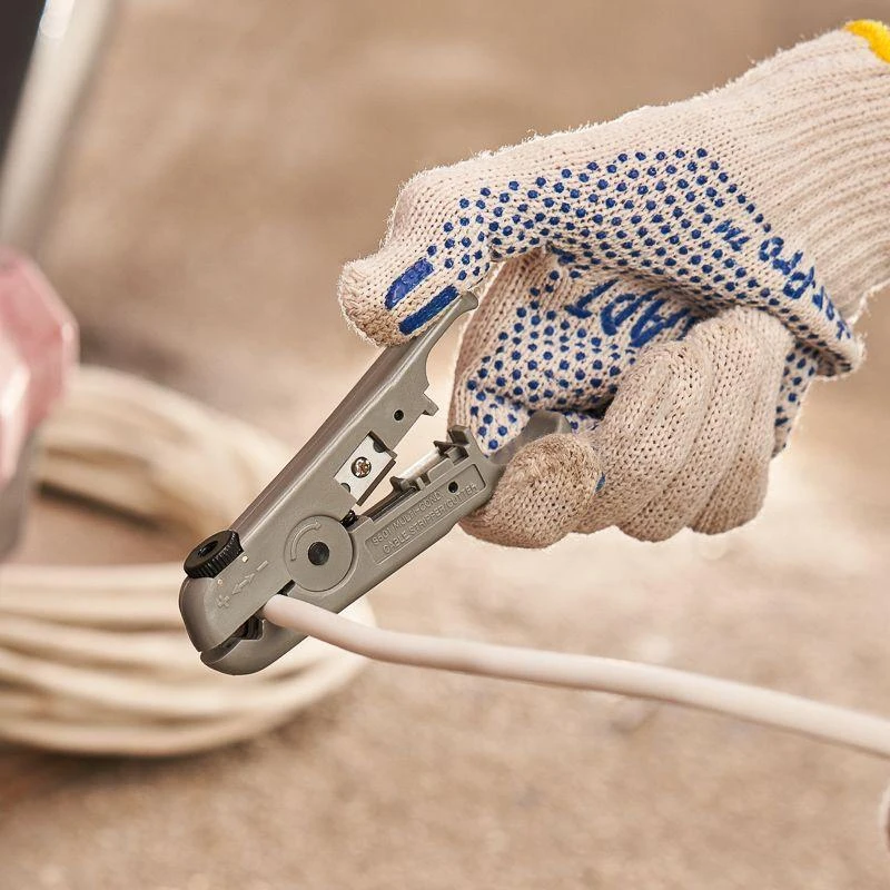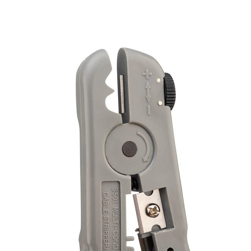 Корпус инструмента изготовлен из ударопрочного и износостойкого полиамидного пластика. Возможность замены лезвий для обрезки и зачистки кабеля позволяет эксплуатировать один инструмент длительное время. Лезвия сменного типа изготовлены из нержавеющей стали, благодаря чему не подвержены коррозии. Оснащен регулировочным колесом для изменения глубины прорезания изоляции, который исключает вероятность повреждение жил кабеля. В корпус встроена возвратная пружина, которая обеспечивает обратный ход рукояток и упрощает процесс работы с инструментом. Пластиковые рукоятки благодаря специальной форме удобно лежат в руке и обеспечивают легкую и приятную работу с инструментом.
