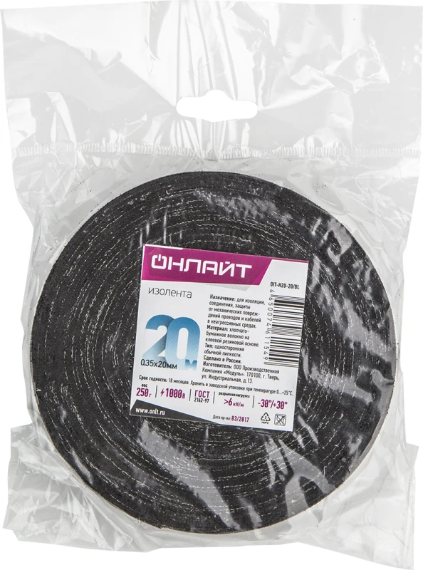 Изолента ХБ 20мм (рул.20м) OIT-H20-20/BL 250г ОНЛАЙТ 20373 черного цвета