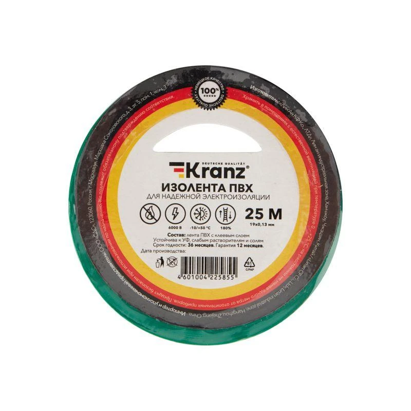 Изолента ПВХ 0.13х19мм 25м зеленая (уп.5шт) Kranz KR-09-2203