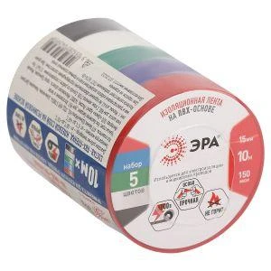 Изолента ПВХ 15ммх10м 5цветов (уп.5шт) ЭРА C0038781