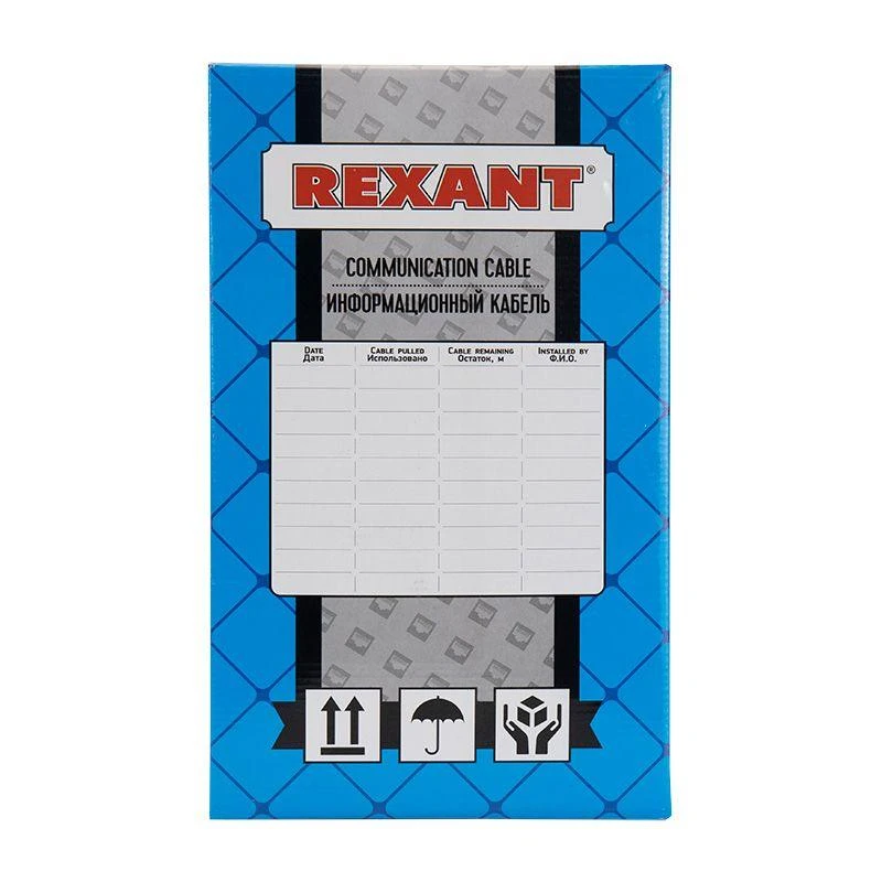 Кабель UTP 4PR 23AWG, CAT6 нг(А)-HF (бухта 305 м) REхANT. Неэкранированная витая пара, материал проводника — высокоочищенная бескислородная медь, калибр (23 AWG). Материал оболочки — нг(А)-HF, огнестойкий, не распространяющий горение при групповой прокладке, безгалогенный композит, пониженной пожарной опасности с низкой коррозионной активностью продуктов горения и тления.