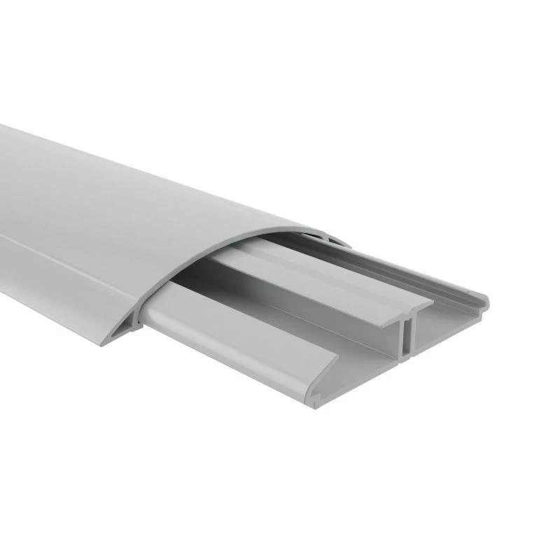 Кабель-канал ДКС предназначен для размещения на полу. Он имеет удобную полукруглую форму для оптимального распределения нагрузки. Внутри кабельного канала уже проложен разделитель, позволяющий прокладывать в нем провода разного назначения. Изделие изготовлено из пластика, не содержащего галогенов, а потому может использоваться в местах массового пребывания людей. Канал имеет длину 2 метра и высоту 17,5 мм. Цвет: серый.