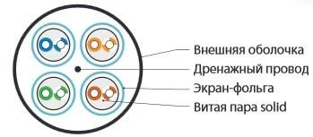 Кабель витая пара экранир. FTP (F/UTP) кат.6 4 пары 23 AWG ОЖ solid для внешн. прокладки LSZH UFTP4-C6-SOLID-OUTDOOR-LSZH-BK-500 (500м) черн. Hyperline 227934