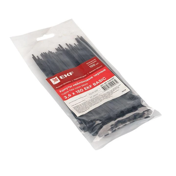 Хомут кабельный 3.6х150 нейл. черн. (уп.100шт) EKF plc-cb-3.6x150
