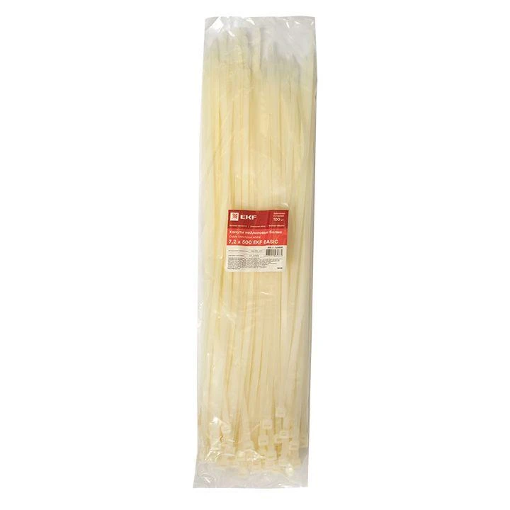 Хомут кабельный 7.2х500 нейл. бел. (уп.100шт) EKF plc-c-7.2x500
