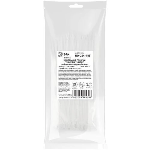 Хомут кабельный Simple 2.5х200 NO-224-188 бел. (уп.100шт) Эра Б0066019