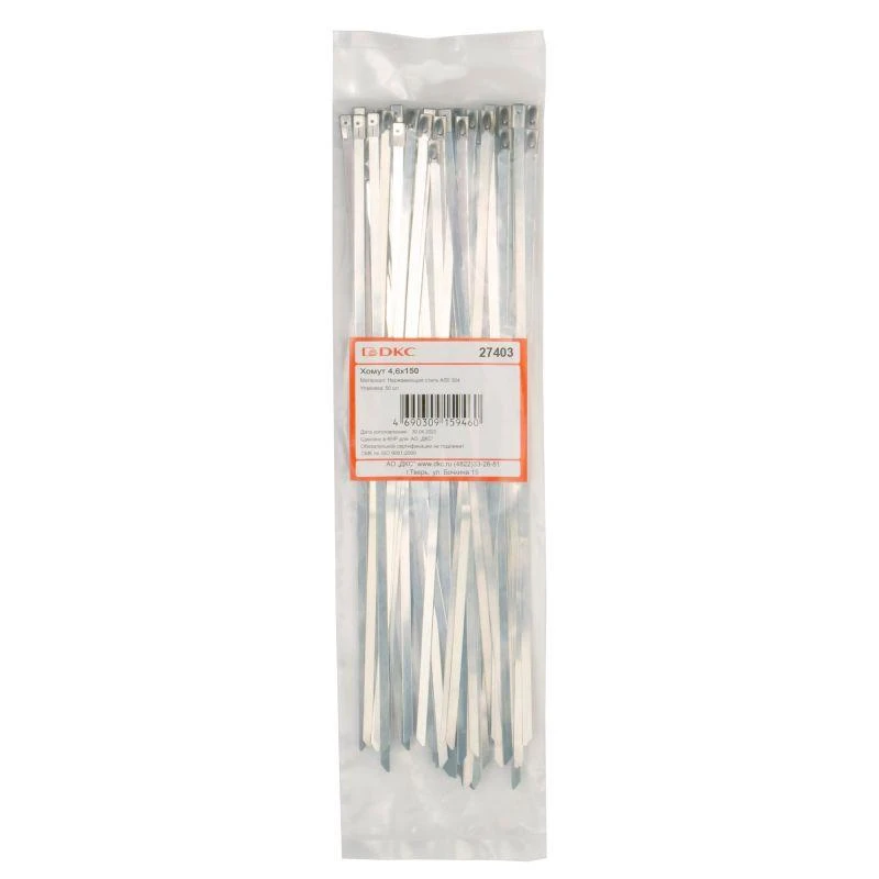 Хомут кабельный 4.6х150 нерж. сталь AISI 304 серебр. (уп.50шт) DKC 27403