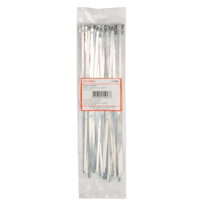 Хомут кабельный 4.6х300 нерж. сталь AISI 304 серебр. (уп.50шт) DKC 27406