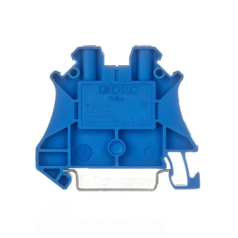 Клемма проходная винтовой зажим 2 точки подключения 4кв.мм син. DKC TUR-4-BU