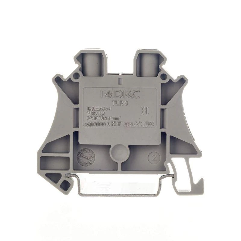 Клемма проходная винтовой зажим 2 точки подключения 6кв.мм сер. DKC TUR-6