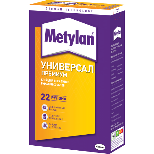 Метилан Универсал Премиум Высококачественный, быстрорастворимый клей на основе модифицированного крахмала для приклеивания различных видов обоев . Легкое нанесение