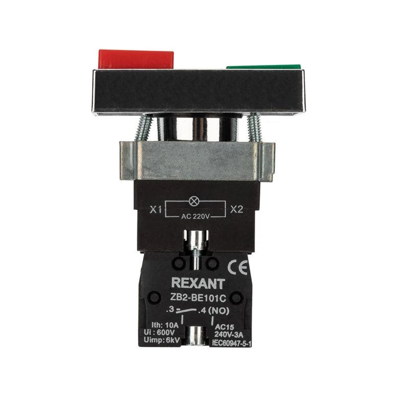 Кнопка LAY5 "I-O" прямоугольная 230 В NO+NC Rexant 36-5541