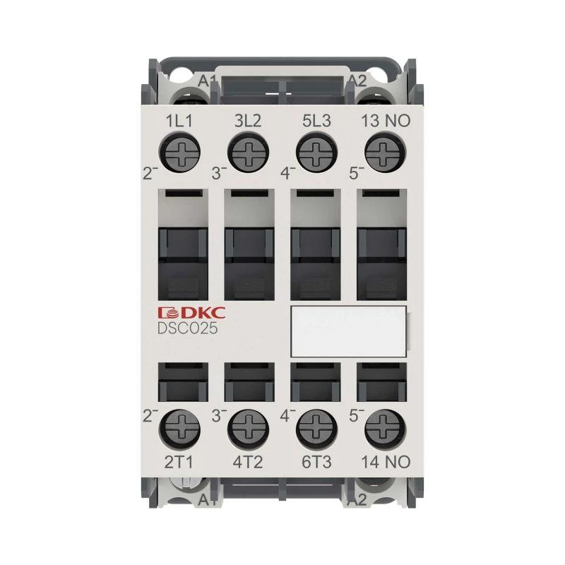 Электромагнитный контактор "YON" DSC025 25 A 12,5 кВт AC3 3P кат.220 В AC 1НО для коммутации асинхронных двигателей, частотных приводов и других высокоиндуктивных нагрузок (категория применения АС-3), а также для работы в тяжелых режимах, таких как пуск и торможение противовключением электродвигателей с короткозамкнутым ротором (АС-4).