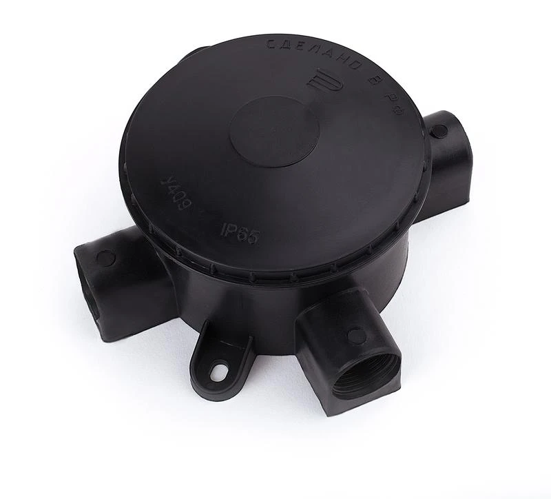 на резьбе. Корпус имеет 4 сальниковых ответвления с внутренней резьбой, в которые ввёртываются пластмассовые гайки. Для уплотнения
