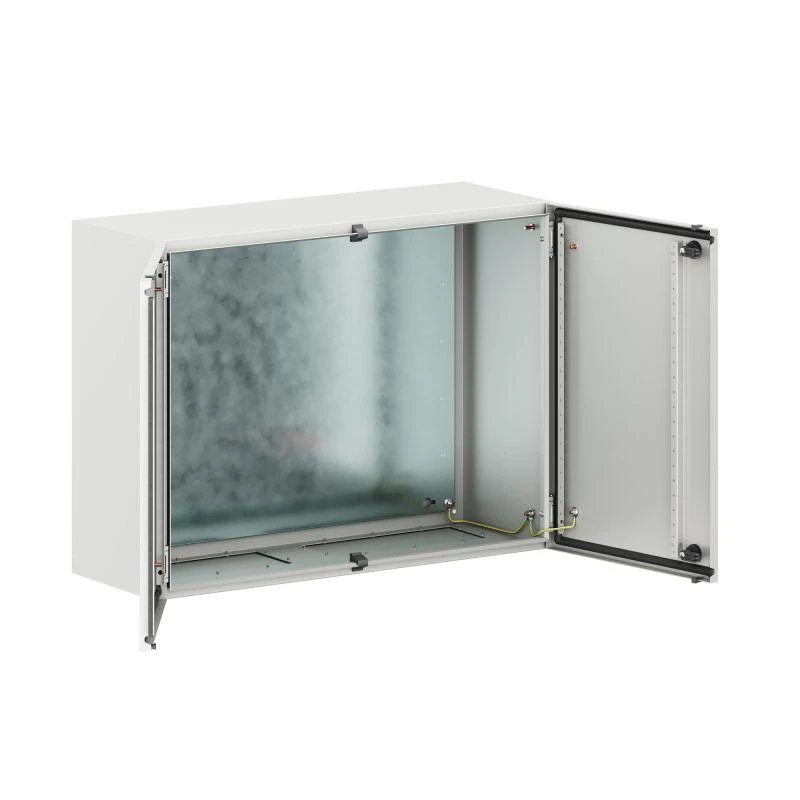 Навесные корпуса серии STE предназначены для систем автоматизации и распределения электроэнергии. Корпус, дверь, фланец серии STE изготавливаются из листовой стали толщиной 1,5 мм с атмосферостойким порошковым покрытием, цвет RAL7035. Монтажная плата изготовлена из оцинкованной стали толщиной 1,8 мм. Степень защиты IP55, ударопрочность IK10, сейсмостойкость 9 баллов по шкале MSK-64, климатическое исполнение УХЛ1, ОМ2, ОМ3, группу горючести согласно Г1. Комплект поставки: корпус, двустворчатая дверь, монтажная плата с двунаправленной разметкой, дверные рейки, поворотный замок 2 шт., сплошной фланец для ввода кабеля 2 шт., комплект заземления с проводами заземления. Габариты 600x800x300 (ШхВхГ) мм.