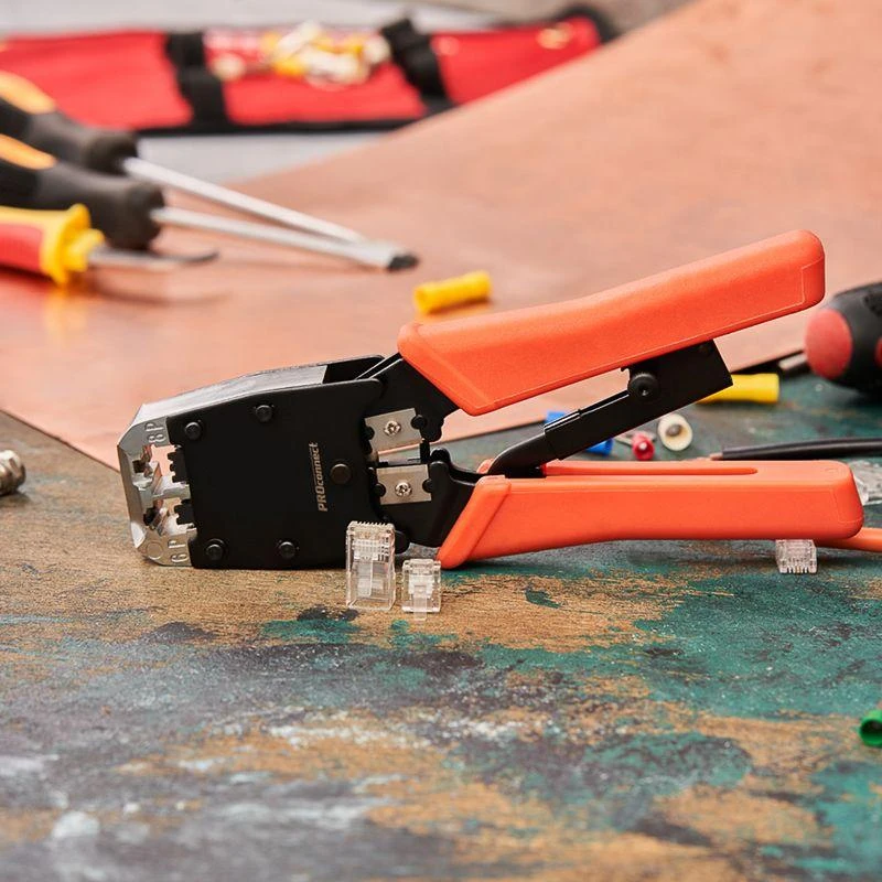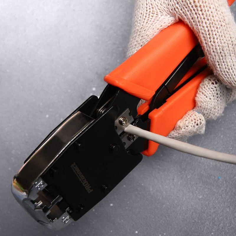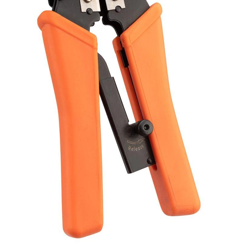 Кримпер для обжима ht-500R универсальный инструмент, предназначен для обжима разъемов RJ-45 (8P8C), RJ-12 (6P6C) и RJ-11 (6P4C и 6P2C), а также для снятия изоляции и обрезки проводов. Корпус обработан воронением и выполнен из закаленной инструментальной стали с возвратным механизмом для обеспечения обратного хода рукояток. Клещи имеют храповой механизм, что гарантирует полный цикл качественной опрессовки. Удобные эргономичные рукоятки выполнены из нескользящего плотного синтетического покрытия, что сделают работу с инструментом легкой и приятной.