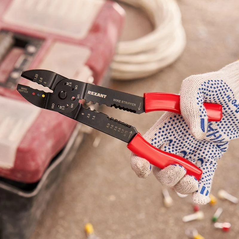 Кримпер для обжима наконечников и зачистки проводов ht-204 REXANT универсальный инструмент объединяющий в себе функции:
