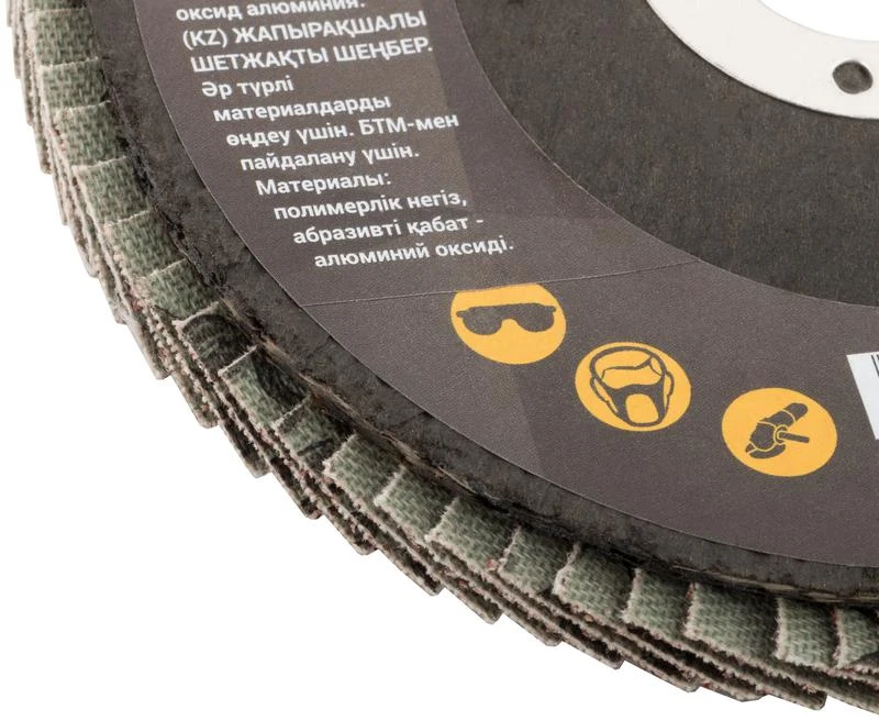 Тип 2 (Конический). Для обработки различных материалов. Используется с УШМ. 80 лепестков. Лепестки расположены под углом. Посадочный диаметр 22,2 мм. Материал: полимерная основа, образивный слой-оксид алюминия.