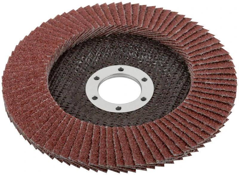 Тип 2 (Конический). Для обработки различных материалов. Используется с УШМ. 80 лепестков. Лепестки расположены под углом. Посадочный диаметр 22,2 мм. Материал: полимерная основа, образивный слой-оксид алюминия.