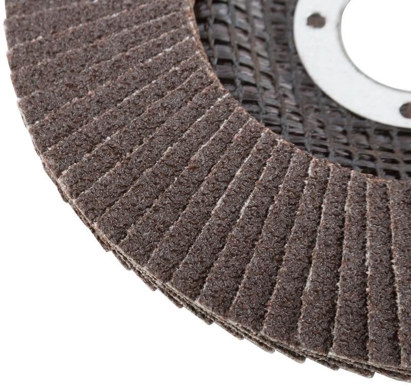 При изготовлении используется высококачественный гибкий абразивный материал состоящий из тканевой основы на которую нанесен слой кальцинированного оксида алюминия. Данный абразив имеет более твердые частицы, чем обычный оксид алюминия - Корунд, что позволяет увеличить скорость обрабатываемой поверхности до пяти раз. Наполняемость диска составляет 80/96 лепестков с углом наклона 10 градусов, что позволяет увеличить КПД круга и его стойкость к износу в несколько раз. Предназначен для обработки металла и нержавеющей стали. Для углошлифовальных машин. Посадочный диаметр 22,2мм.
