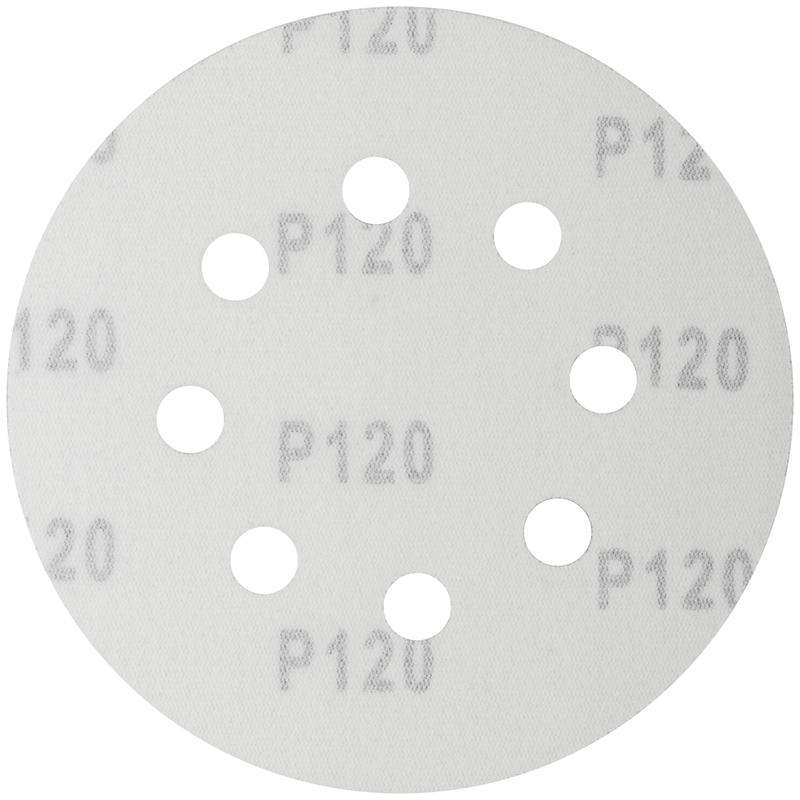 D=125 мм. Цена за набор 5 шт. На тканевой основе с липучкой, с 8 отверстиями. Для обработки плоских поверхностей. Для электрических эксцентриковых шлифмашин с пылеотводом. Материал: абразивный слой из оксида алюминия. Упаковка: картонный конверт.