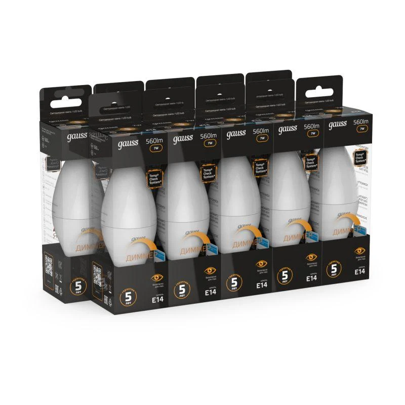 Лампа светодиодная Black 7Вт свеча 3000К тепл. бел. E14 560лм диммир. GAUSS 103101107-D