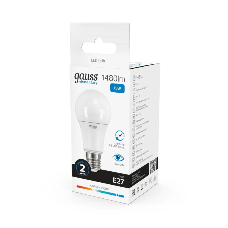 Лампа светодиодная Elementary 15Вт A60 грушевидная 6500К холод. бел. E27 1480лм GAUSS 23235